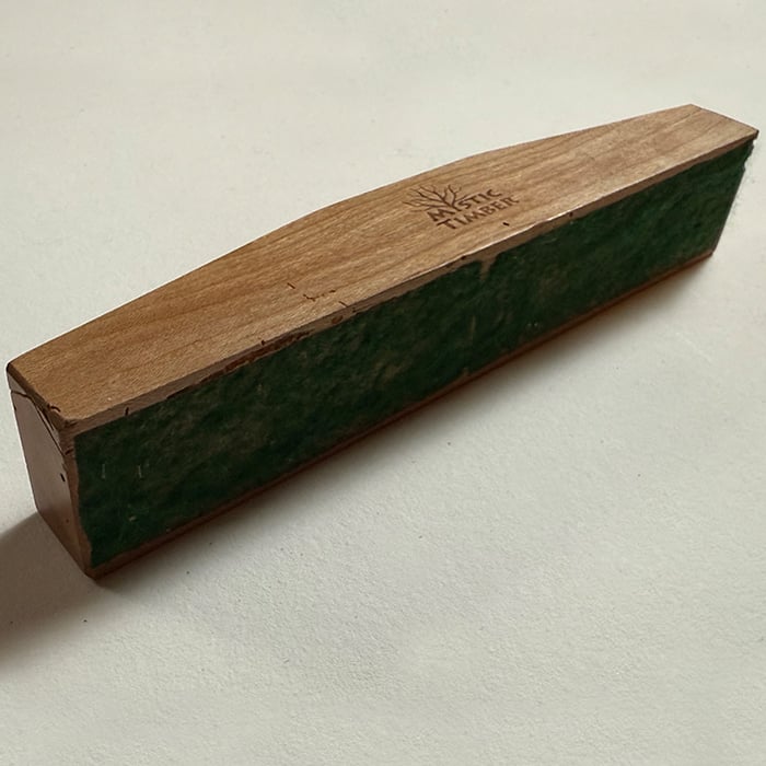 Each of these displays were only available to retail stores. Every base is signed and dated "JORGY" by Mystic TImber founder Bruce "Jorgy" Jorgensen. They are hidden underneath the cork, felt, or whatever bottom material was used.