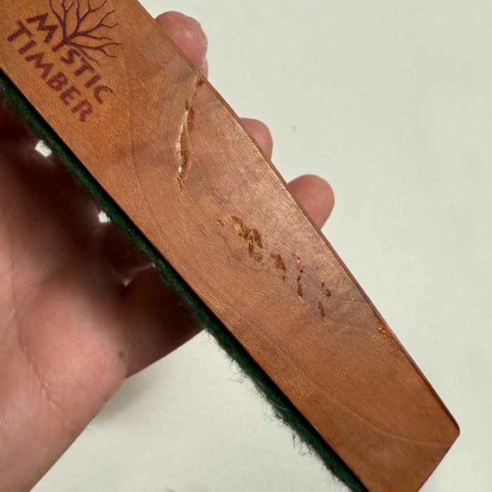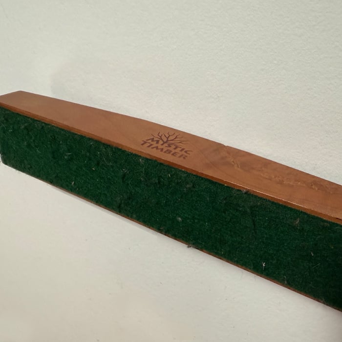This is a 2021 (or earlier) era store display with 27 tips down holes (only fits balls, pics, flats) and the green felt bottom. Really cool natural spalting on one side.